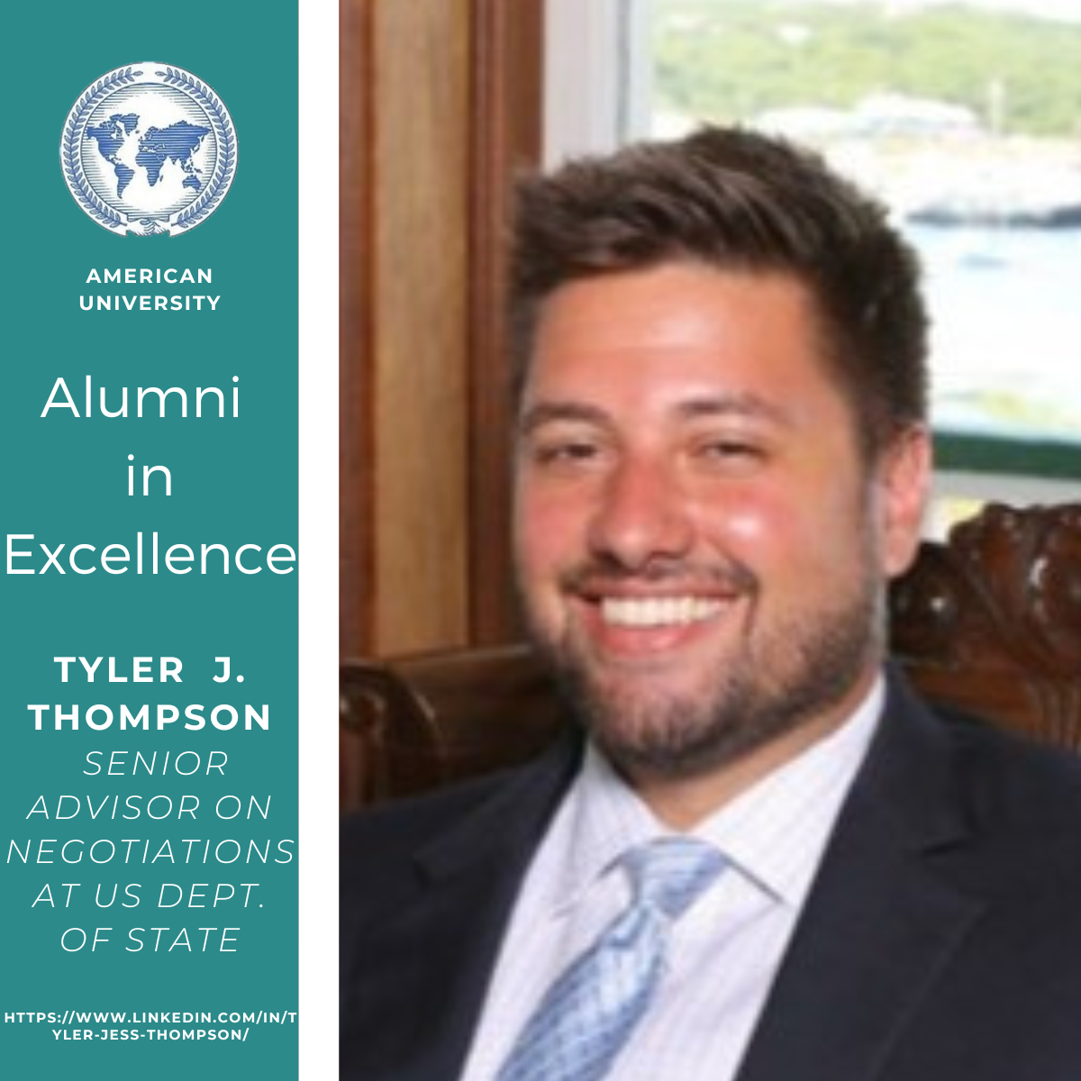 Tyler Thompson graduated from American University with a dual J.D./M.A. degree in international affairs in 2011. Tyler is currently a Senior Advisor on Negotiations at the US Department of State. Connect on LinkedIn