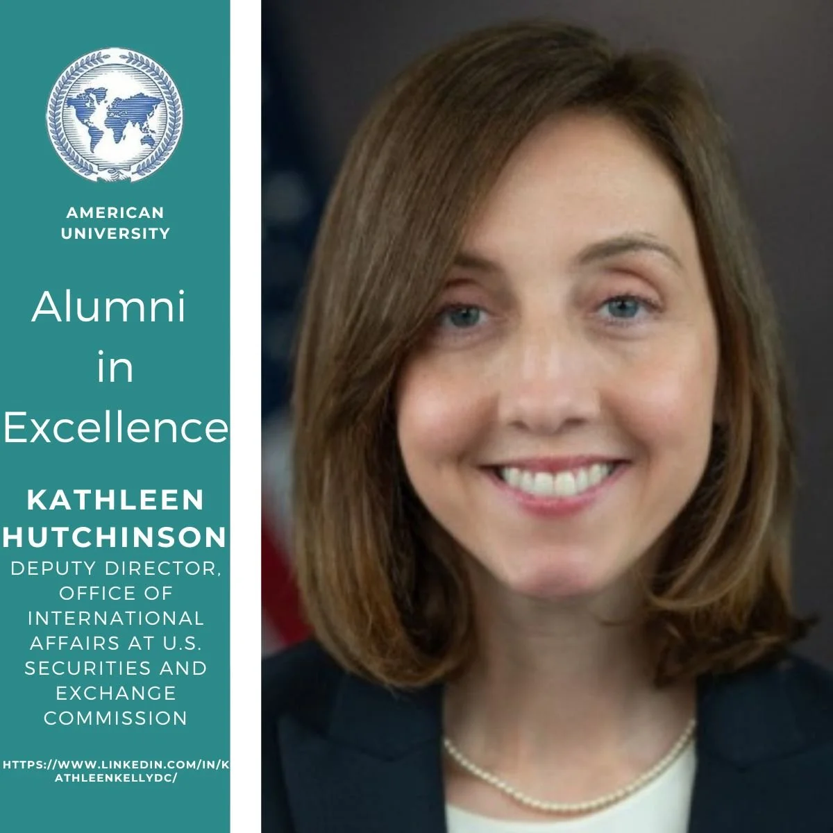 Kathleen Hutchinson graduated from American University with a dual J.D./M.A. degree in 2000. Kathleen is the Deputy Director, Office of International Affairs at U.S. Securities and Exchange Commission.